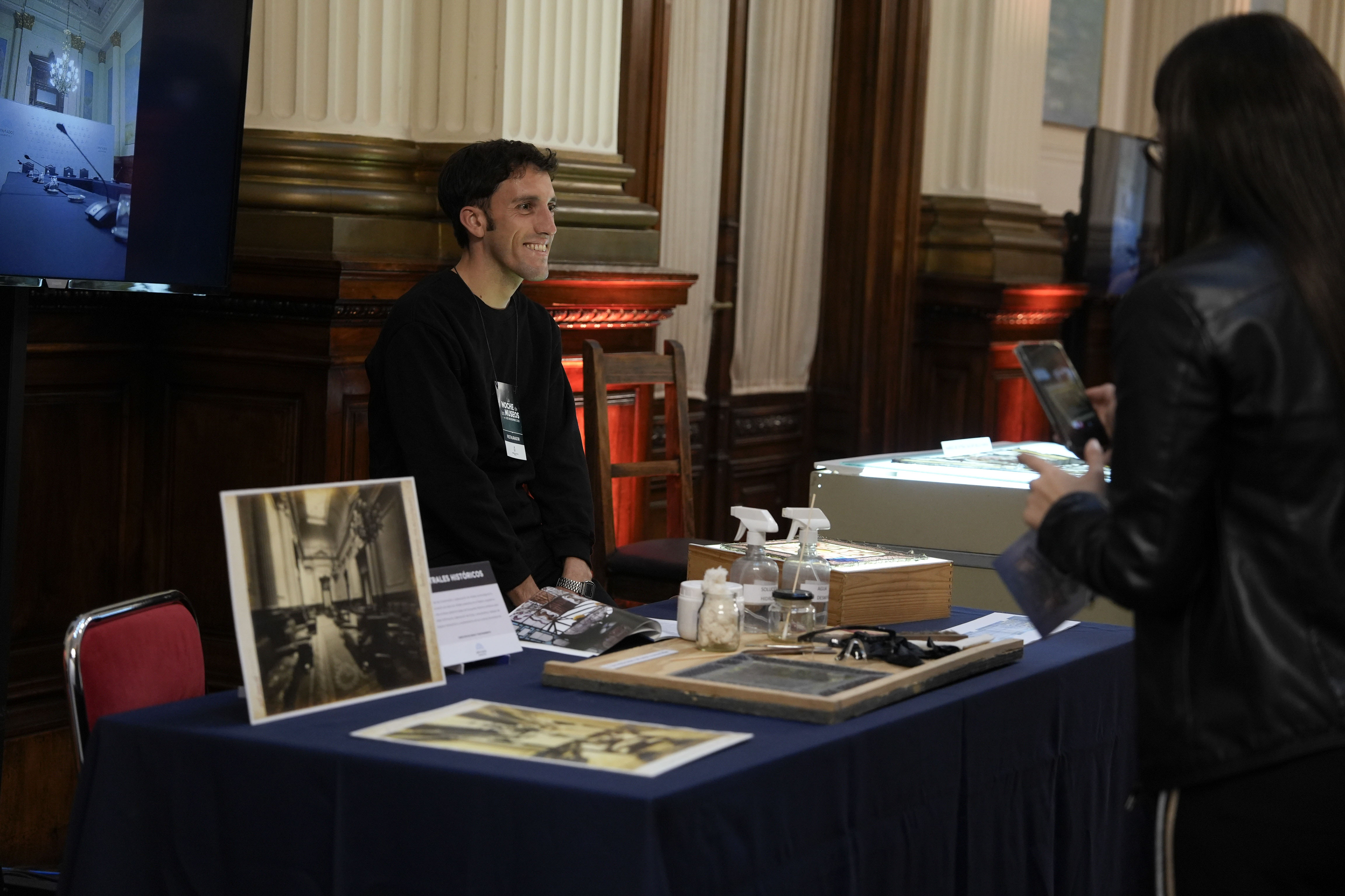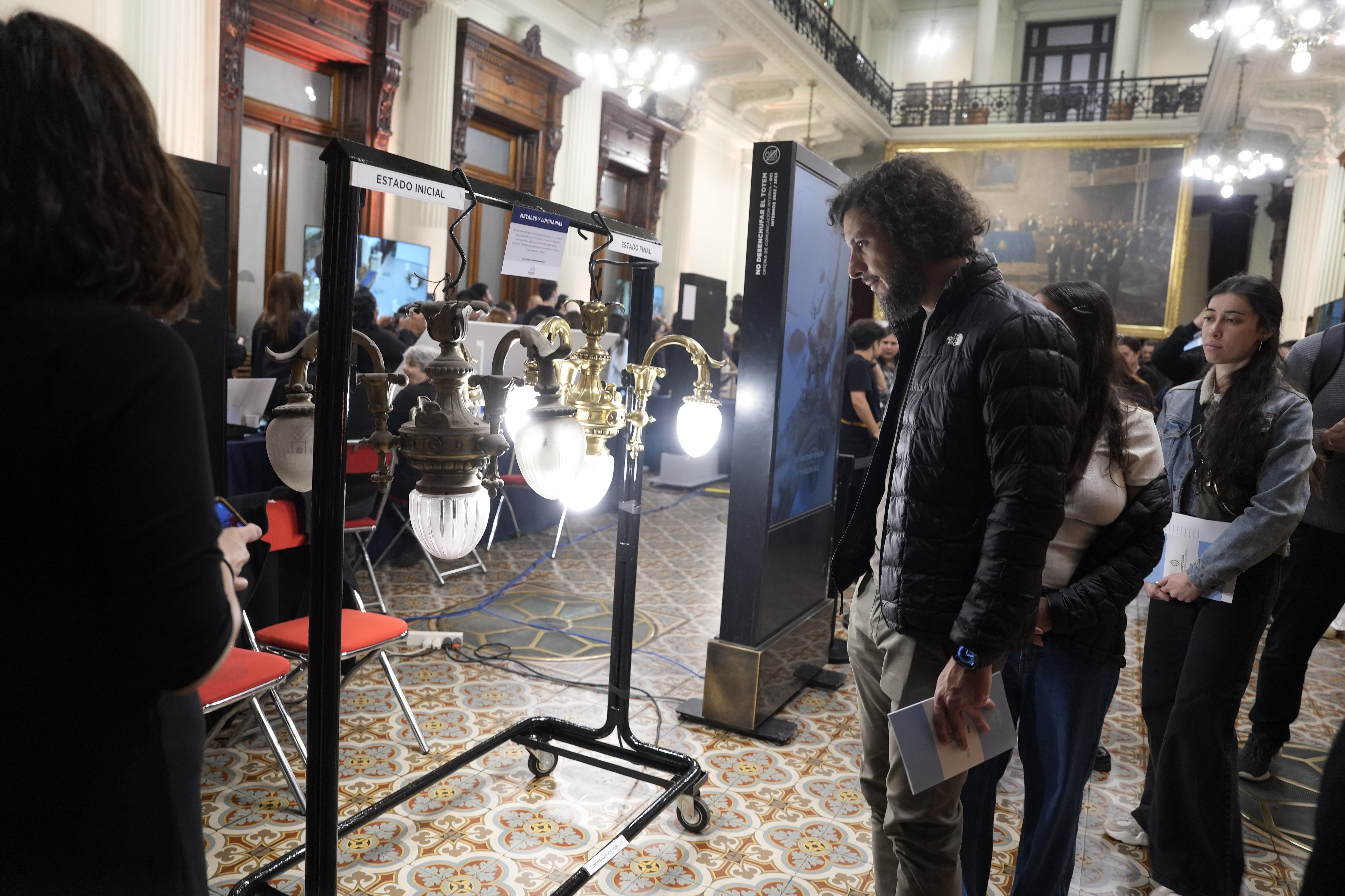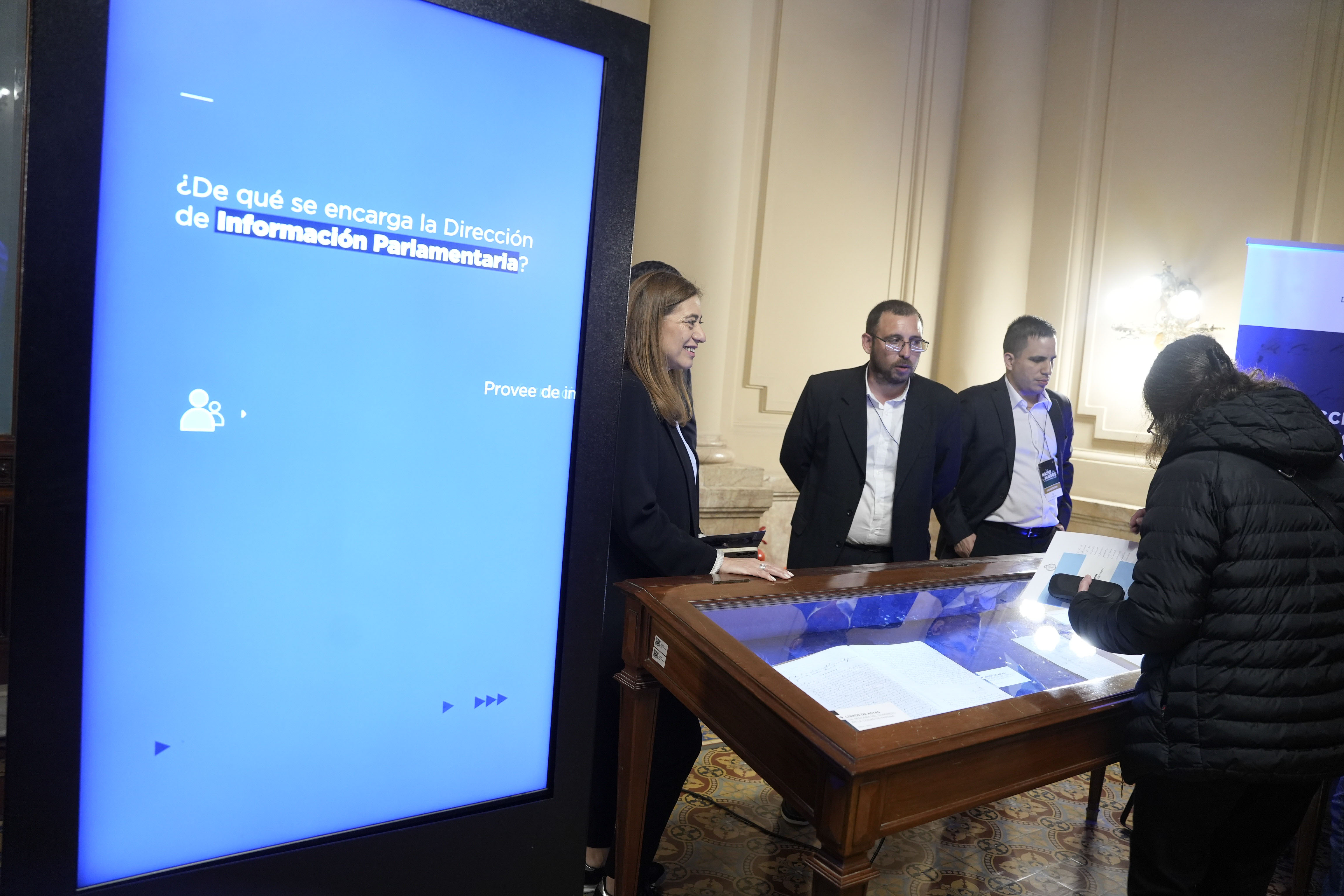 En el Hall de Presidencia de la Cámara de Diputados, una pantalla mostró el trabajo de la Dirección de Información Parlamentaria, complementada con vitrinas de la Dirección de Archivo y Publicaciones que exhibieron documentos históricos de mediados del siglo XIX. Mientras tanto, en el Salón de los Pasos Perdidos, cinco pantallas presentarón los procesos de restauración de pisos, papel, mármol y bienes culturales de la Cámara de Diputados, junto con muestras originales recuperadas.