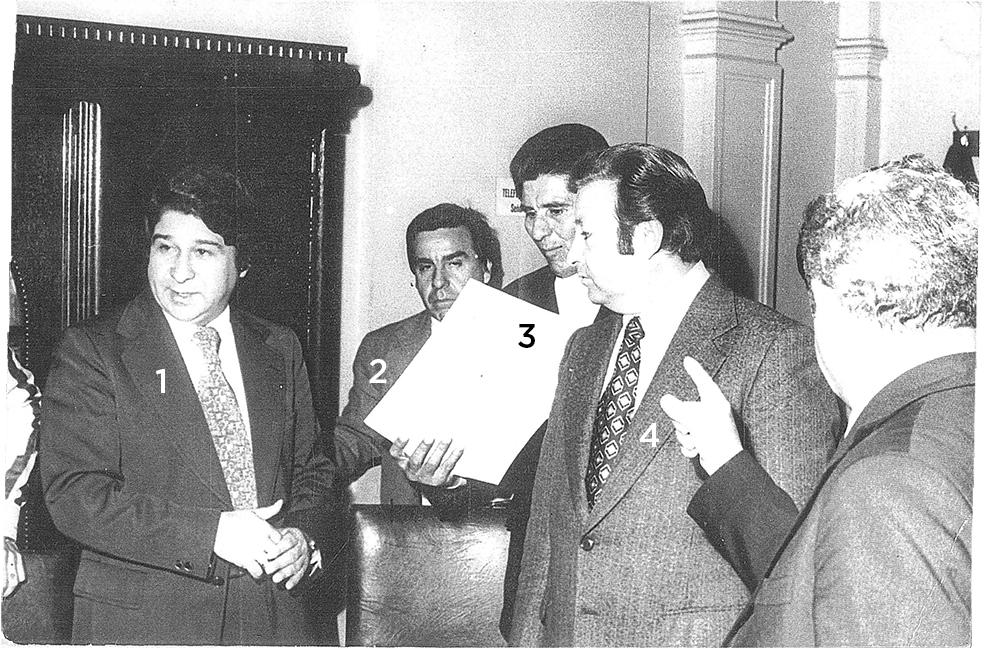Los diputados de la Nación, Alberto Eleodoro Stecco (1), Ramón Pablo Rojas (2), Iván Nicolás Racchini (3) y Ángel Citati (4), reunidos en una oficina del Palacio del Congreso.