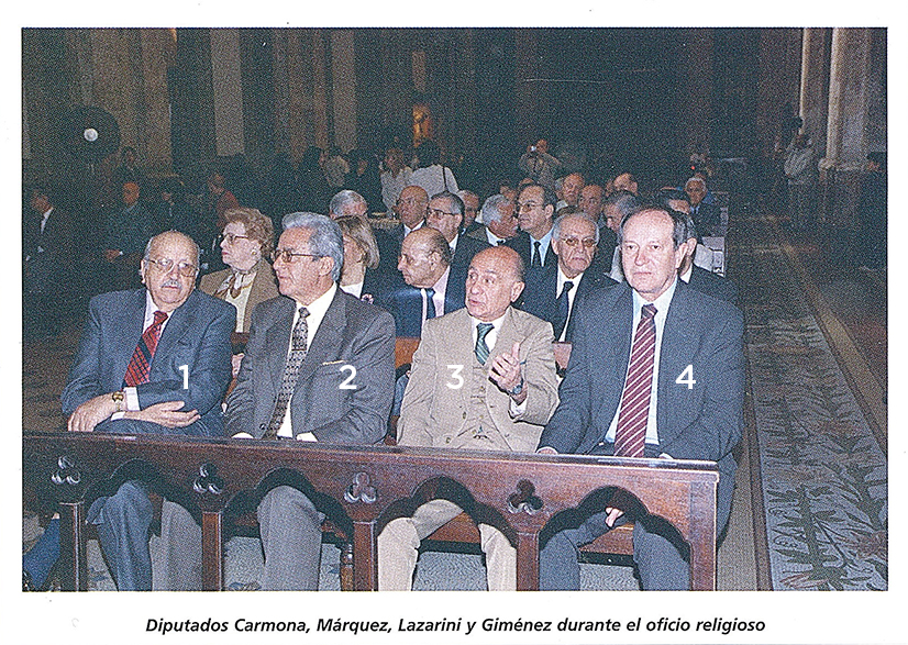 Los diputados de la Nación, Jorge Carmona (1), Miguel José Martínez Márquez (2), José Luis Lazzarini (3) y Jacinto Giménez (4) durante un oficio religioso.