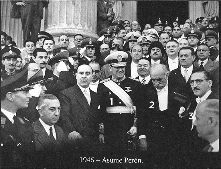 1. Juan D. Perón, 2. Hortensio Quijano, 3. Ricardo Guardo
