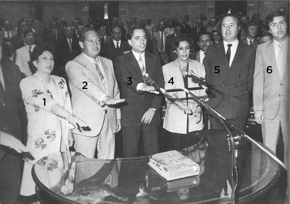 Norma Allegrone (1), Carlos Bello (2), Carlos Grosso (3), María Julia Alzogaray (4), Roberto Secundino Digón (5) y Miguel Angel Toma (6).