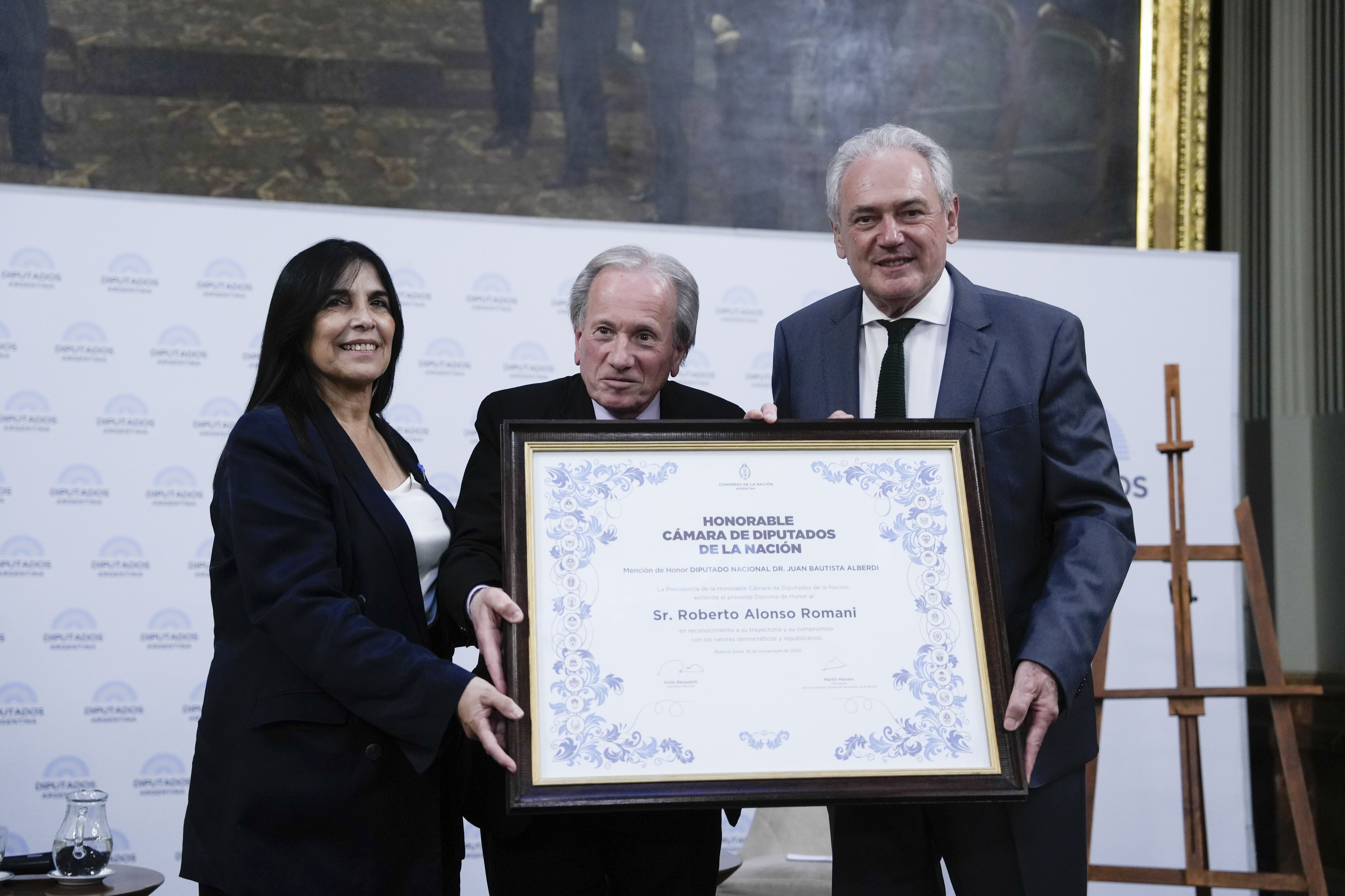 Este martes 18 de noviembre, a las 17:00, se realizó en el Salón de los Pasos Perdidos del Palacio Legislativo el acto de entrega de la “Mención de Honor Diputado Nacional Dr. Juan Bautista Alberdi” al poeta, escritor, periodista, compositor y gestor cultural argentino, Roberto Alonso Romani, en reconocimiento a su vasta obra y trayectoria, que han contribuido a preservar, difundir y enaltecer la identidad cultural del litoral, consolidándolo como una figura esencial de la cultura argentina.”