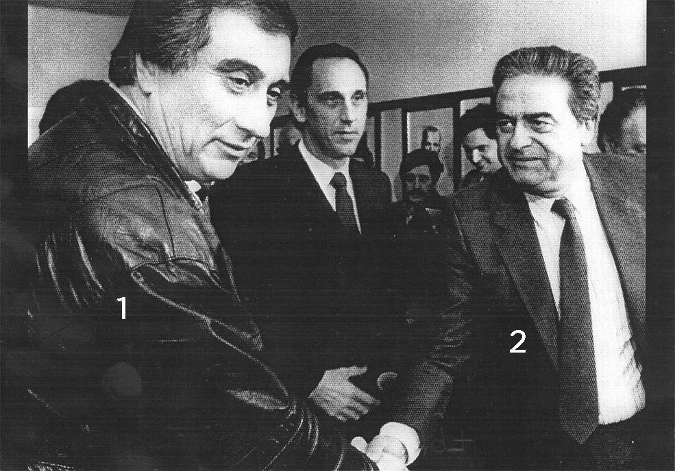 Encuentro entre Saúl Edolver Ubaldini*, entonces secretario general de la CGT Brasil, y el diputado nacional Jorge Alberto Triaca**. Año 1986. La imagen retrata un momento clave del diálogo entre sectores sindicales y políticos durante el gobierno de Raúl Alfonsín, en un contexto de fuertes tensiones sociales y movilizaciones obreras.