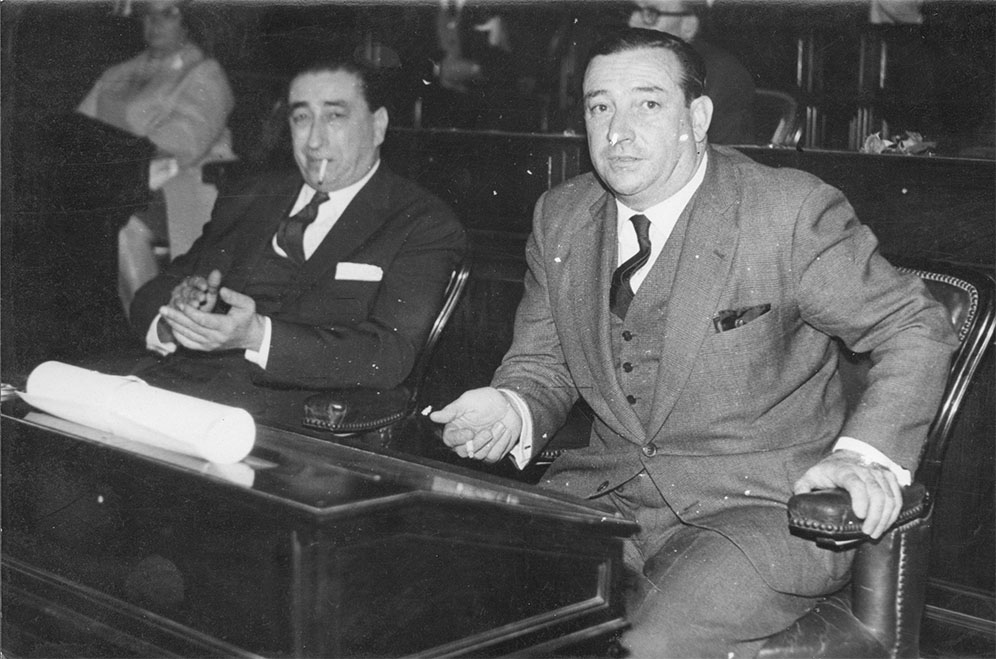 Alberto E. Stecco, Lorenzo F. D’Angelo, y Miguel Unamuno junto al sindicalista Lorenzo Miguel